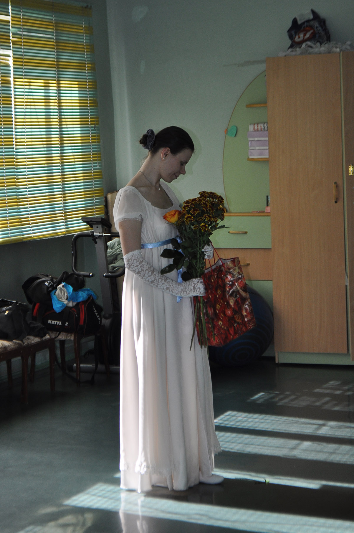 Ага, уставшая после выступления... простуженного Тимошки :) А цветами я до сих пор любуюсь.