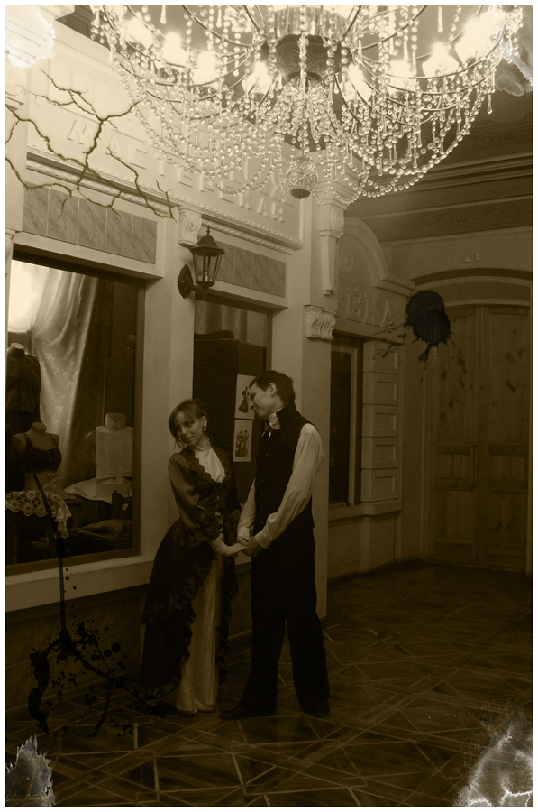 Ну вот. Всю красоту — и обрезать или заменить. Если это делать, то потеряется весь художественный смысл, потому как фигуры будут центром композиции. Почти 50% фотографии кадрировать нужно будет: там дверь ещё не того, не вписывается. Во-первых, сама фотография станет меньше, во-вторых не будет видно надпись "Швейная мастерская" (которая тоже несёт особый настрой, как мне кажется, надпись мне было очень жалко, она мне нравится). Ну и вообще. Неприлично себя так посреди города вести, где люди ходят. Если даже зафотошопить всё вышесказанное, то надо парк и беседку, где в наличии имеется некая уединённость и молодые люди уже могут не бояться получить порицание за такое поведение. Ну то есть вообще тогда вырезать всю пару и перенести её на другой фон. Для максимальной аутентичности. Или включить фонарик над ними, мол, ночь, никого нет, поэтому всё хорошо. Подумаю над этим, но надпись всё равно жалко. Да и мастерство мне для подобных идей копить и копить ещё.