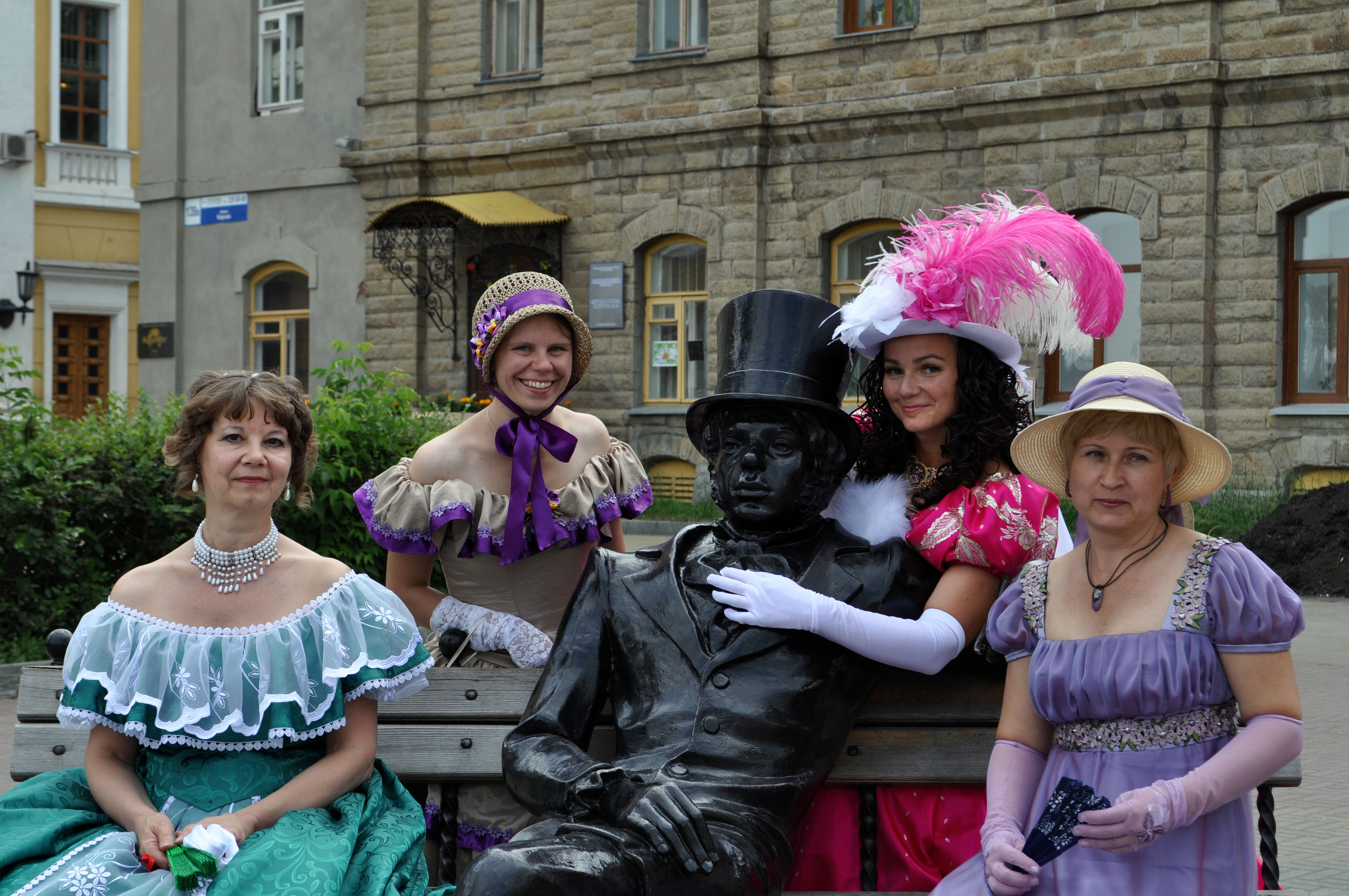 А вот когда Олю кавалеры окружали она испугалась и убежала. Не быть тебе Оля памятником.